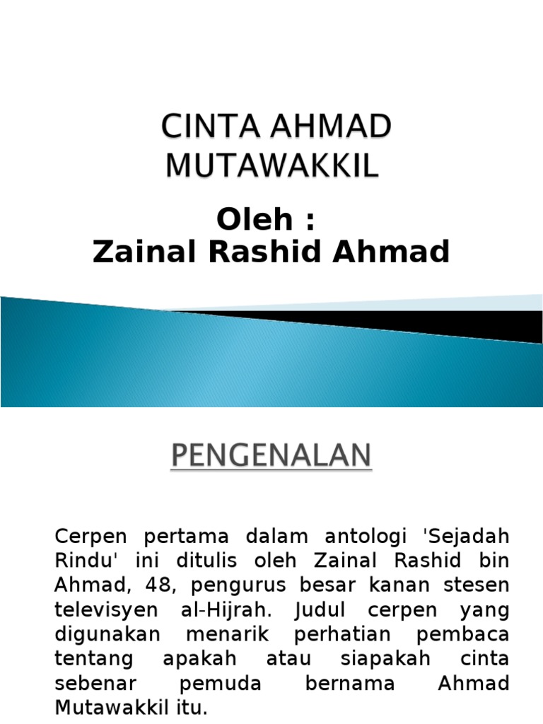 Judul cerpen yang digunakan menarik perhatian pembaca tentang apakah atau siapakah cinta sebenar pemuda bernama ahmad mutawakkil itu. Ahmad mutawakkil yang parah ditembak telah memeranjatkan penduduk kampung yang. Komsas :cerpen cinta ahamad mutawakkil. Cerpen cinta ahmad mutawakkil (zainal rasyid ahmad) memaparkan tema perjuangan menentang penjajah. Añadir a mis cuadernos (0) descargar archivo pdf insertar en mi web o.