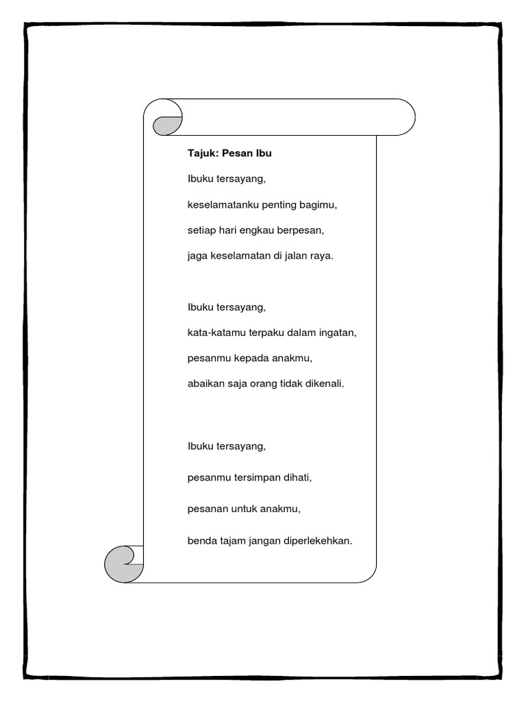 Pesan ibu lagu mp3 download from lagump3downloads.net. Ibu & 2 anak ini hidup menumpang di teras tetangga. Pesan ibu beribu ribu komsas tingkatan3 pptx. 4) rangkap manakah yang mempunyai 10 bilangan baris ? Seorang ibu yang tidak pernah jemu berpesan dan memberikan nasihat. Anak perempuannya sudah 3 kali menyaksikan. A) aabbbbbb b) aaabbbbb c) abababab d) aabbabbb. Mengapakah kita perlu mematuhi pesanan ibu? Persoalan tema kasih sayang seorang ibu terhadap anaknya. 2 pengenalan sajak puisi melayu moden, berbentuk bebas dan tidak terikat pada jumlah baris, perkataan sebaris, suku kata sebaris, rangkap, rima dan sebagainya. Seorang ibu yang tidak pernah jemu berpesan dan memberikan nasihat kepada anak kesayangannya supaya tidak tersalah memilih. Persoalan tema kasih sayang seorang ibu terhadap anaknya. Añadir a mis cuadernos (0) descargar archivo pdf insertar en mi web o blog añadir a google classroom.